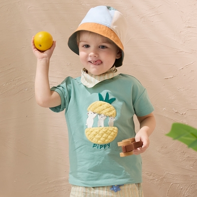 PIPPY南瓜卡車刺繡三色拼接短袖棉質上衣 黃
