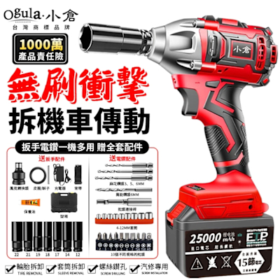 【Ogula小倉】衝擊扳手 無刷電動扳手 電池認證BSMI:R3E558-贈起子配件組【20000M一電】