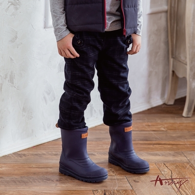 Annys安妮公主-沉穩格紋造型扣秋冬款鬆緊男長褲*0491藍色