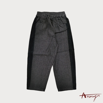 Annys安妮公主-1989個性絨布拼接秋冬款純棉鬆緊長褲*1468黑色