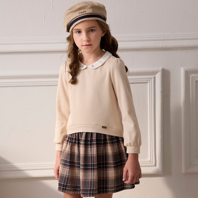 PIPPY兩件式圓領長袖格紋背心洋裝 藍 下5折