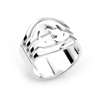 二手品 GUCCI 古馳 Interlocking 鏤空線條雙G 925純銀超寬版戒指