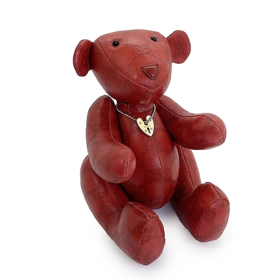 GUCCI 古馳 Guccissima 雙G壓紋皮革愛心鎖紅色泰迪熊(Vintage中古品)