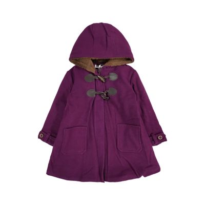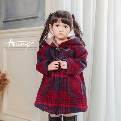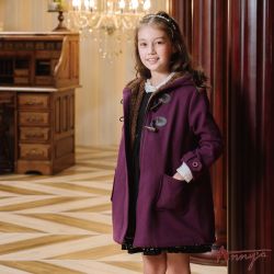 Annys安妮公主-童裝 學院牛角扣內刷毛秋冬款混羊毛連帽大衣*2670紫色