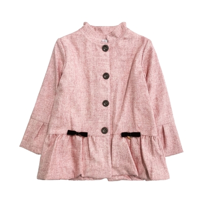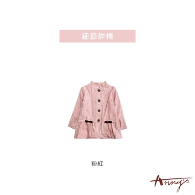 Annys安妮公主-溫柔色系雙蝴蝶結秋冬款傘擺內刷毛混羊毛大衣*9670粉紅