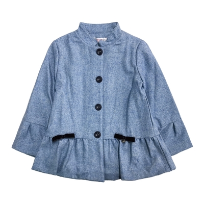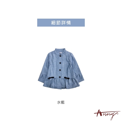 Annys安妮公主-溫柔色系雙蝴蝶結秋冬款傘擺內刷毛混羊毛大衣*9670水藍