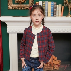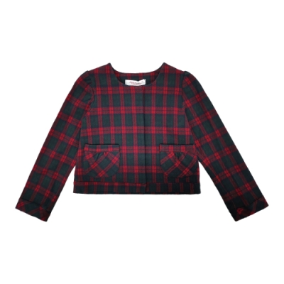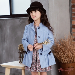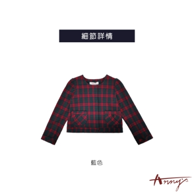 Annys安妮公主-學院格紋秋冬款雙口袋暗扣外套*8295藍色