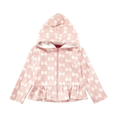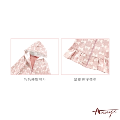 Annys安妮公主-立體蝴蝶結壓紋秋冬款連帽拉鍊外套*1474粉紅