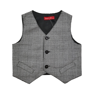 Annys安妮公主-1989率性格紋排釦秋冬款男西裝背心*9490黑色