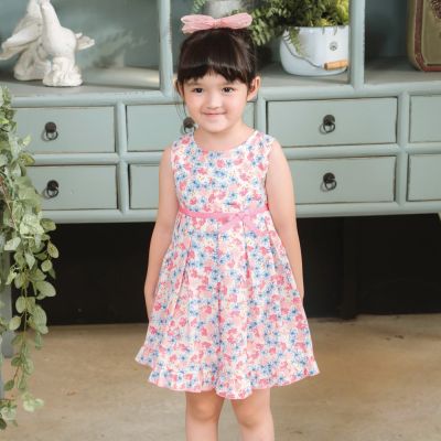 Annys安妮公主-繽紛花樣蝴蝶結春夏款無袖純棉綁帶洋裝(3312粉紅色)