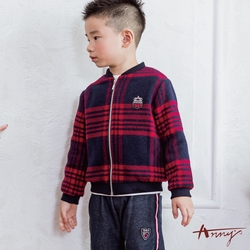 Annys安妮公主-1989紅藍格紋秋冬款混羊毛拉鍊男外套*0497藍色