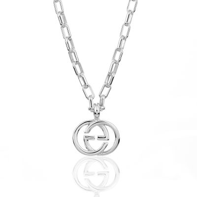 (展示品) GUCCI 古馳 Interlocking 小雙G復古雕花925純銀長版項鍊
