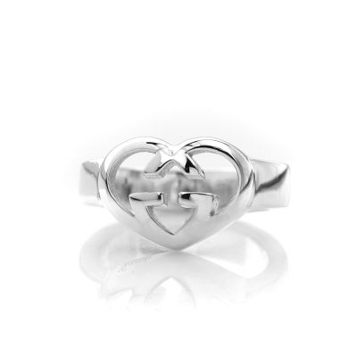 (展示品)GUCCI 古馳 Interlocking 雙G愛心925純銀戒指