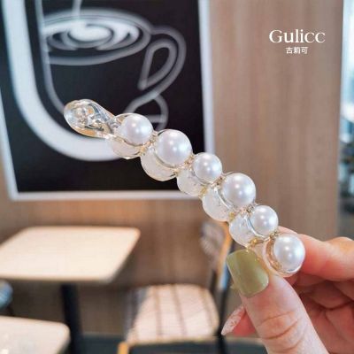 Gulicc 韓版 珍珠 水鑽 大號 香蕉夾(飾品 髮飾 頭飾 髮帶 髮箍 生日禮物 主題穿搭 約會 雙11 聖誕節)