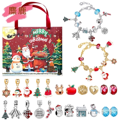 Gulicc 串珠手鍊 手環 倒數日曆 聖誕倒數(24入 禮盒 手鍊 飾品 DIY 盲盒 潘朵拉 串珠 禮物)
