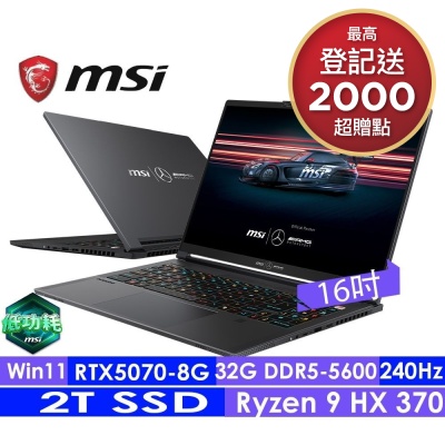 MSI微星 Stealth A16 MercedesAMG AI+ A3XWGG-025TW 16吋電競筆電(Ryzen AI 9 HX 370/32G/2T SSD/RTX 5070-8G/W11)$89,900