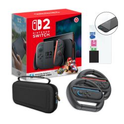 Nintendo 任天堂 Switch 2 主機 (NS2台灣公司貨) +NS2 瑪利歐賽車世界+NS驚喜遊戲片+方向盤+包貼+充電座+矽膠套