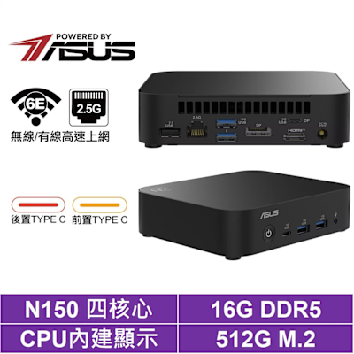 ASUS 華碩 NUC 四核{冰咒龍U17B}迷你電腦(N150/16G/512GB M.2)