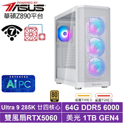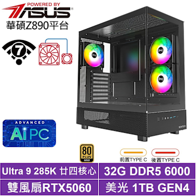華碩Z890平台[軒轅K07C]Ultra 9 285K/RTX 5060/64G/1TB_SSD$69,490