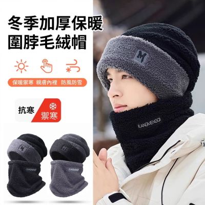ANTIAN 兩件組 冬季加厚防風保暖護頸圍脖毛絨帽 騎車防寒護脖頭套 針織帽子 圍巾$41083折
