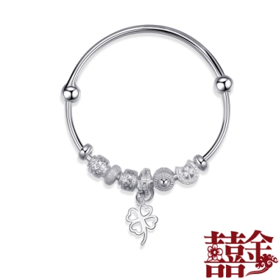 囍金 垂墜幸運草轉運珠 999千足銀手鐲