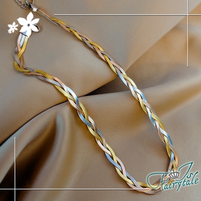 iSFairytale伊飾童話 麻花三股編 扁蛇骨撞色鈦鋼項鍊 顏色可選$35178折