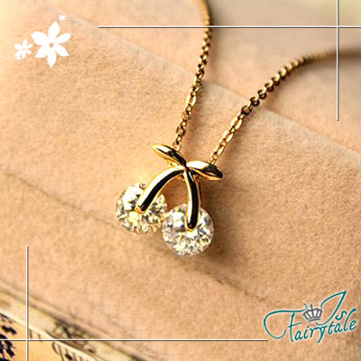 iSFairytale伊飾童話 白鑽櫻桃 金屬鎖骨鍊$96
