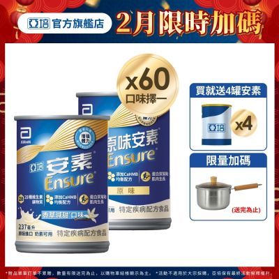 【亞培】任選-安素原味/香草減甜即飲 HMB升級配方237ml x30入x2箱(成人營養品、補充體力、三重優蛋白)含贈品$4,250