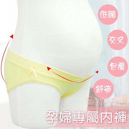涼感莫代爾棉低腰交叉孕婦內褲 甜心俏媽咪 不勒肚 托腹內褲 - 香草甜心【40216】