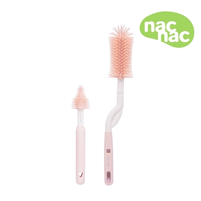【nac nac】白金矽膠旋轉奶瓶奶嘴刷-甜橙粉 (奶瓶刷/奶嘴刷/兒童水杯吸管刷)