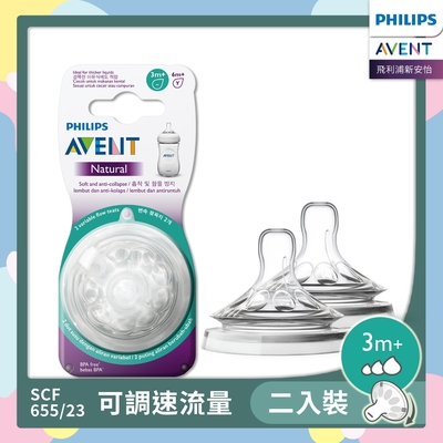 PHILIPS AVENT親乳感防脹氣奶嘴雙入組 可調速-一字嘴 3M+ SCF655/23$240