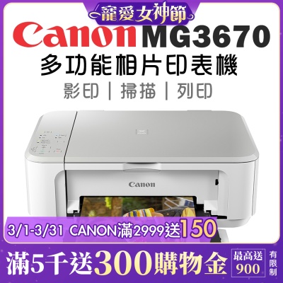 Canon PIXMA MG3670 三合一Wi-Fi自動雙面列印多功能噴墨印表機(黑)$1,990