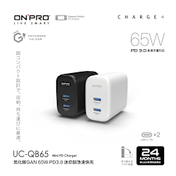 ONPRO UC-GAN65W 氮化鎵GaN 65W 3孔PD快充充電器【Pro2版】$699