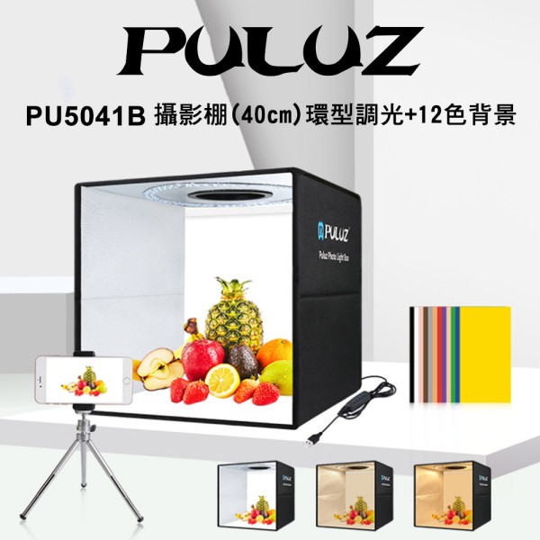 【胖牛 PULUZ】LED 攝影棚-40cm(環形調光+12色背景)$990