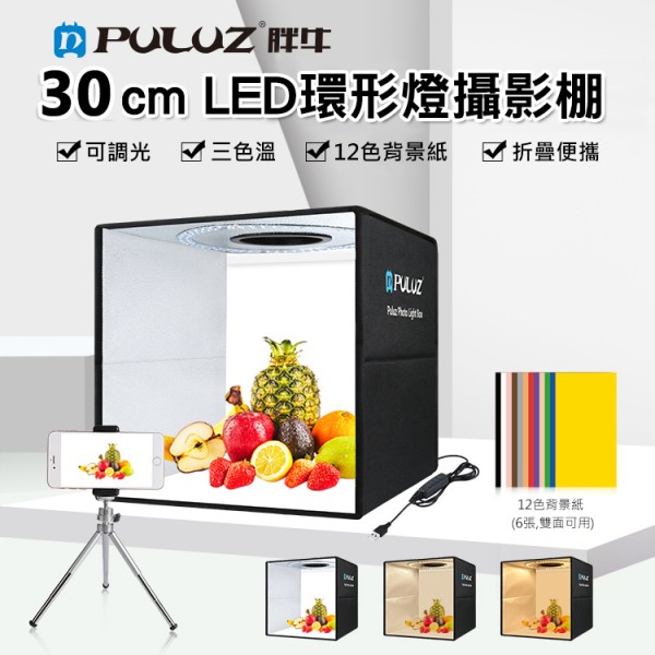 【胖牛 PULUZ】LED 攝影棚-30cm(環形調光+6色背景)$748