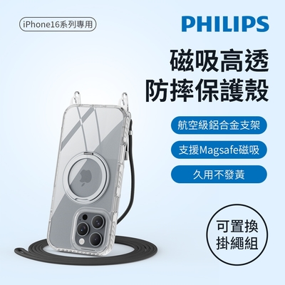 PHILIPS 飛利浦 iPhone 16系列 高透磁吸旋轉支架防摔保護殼 含可置換掛繩組 DLK6120-23TS/96