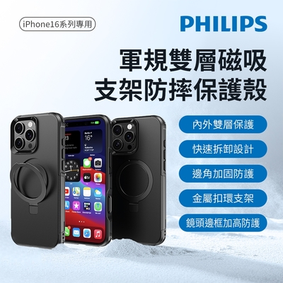 PHILIPS 飛利浦 iPhone 16系列 軍規雙層磁吸支架防摔保護殼 DLK6125-28B/96