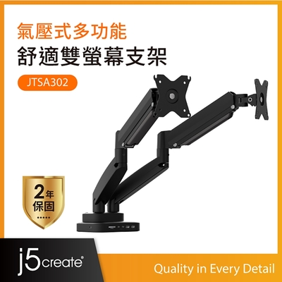 j5create 氣壓式多功能舒適雙螢幕懸臂支架 手臂支架 氣壓式彈簧設計–JTSA302