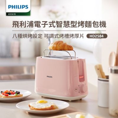 【Philips 飛利浦】電子式智慧型烤麵包機_HD2584(瑰蜜粉)$988