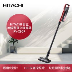 HITACHI日立 免紙袋無線型直立吸塵器 PV-X90P(LED灰塵探照燈/一鍵拆卸集塵盒/壁掛式充電座)$2,980