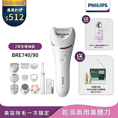 【Philips飛利浦】官方直營 BRE740/90淨柔絲滑美體刀修容全配組$4,074$4,288