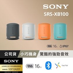 【 Sony 索尼 】可攜式無線藍牙喇叭 SRS-XB100 (公司貨 保固12個月)