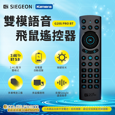 SIEGEON 雙模語音飛鼠遙控器 G20S PRO BT 2.4G/藍牙5.0雙模無線遙控 電視遙控 紅外學習 萬用遙控 Google語音助手遙控器 中文語音搜索遙控 多設備切換$429$442
