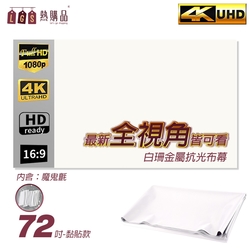 LGS 全視角 白珊抗光布幕 折疊式 黏貼72吋 (布幕 / 投影布幕 / 摺疊布幕 / 室內布幕)$751$807