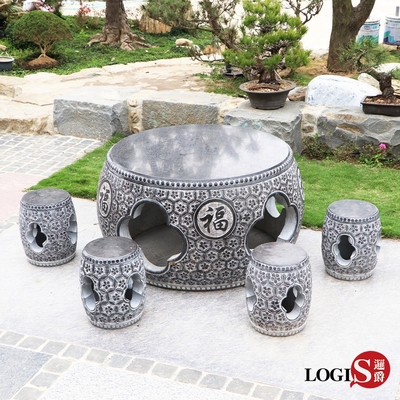 LOGIS邏爵家具 中式庭園手工雕花石1桌4椅 庭院桌椅