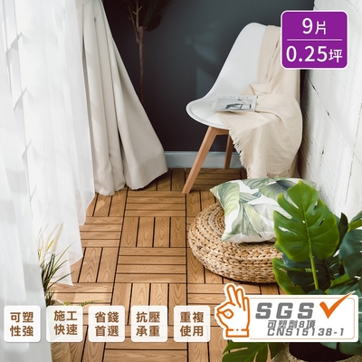 樂嫚妮 塑木地板/陽台/戶外造景/卡扣式拼接施工/9片0.25坪-(3色)