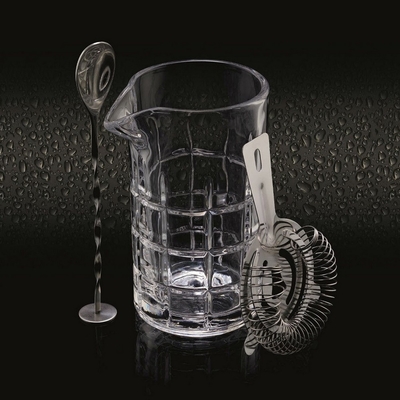 《BarCraft》英國 隔冰吧平匙+玻璃攪拌杯-500ml-- 倒酒玻璃杯 隔冰匙 吧平匙 調酒用具