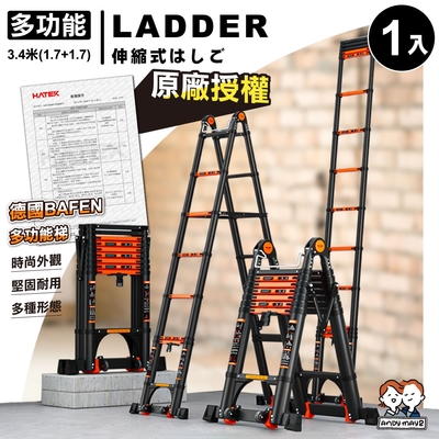 【ONE HOUSE】多功能3.4米(1.7+1.7) 穩步多功能鋁合金加厚伸縮梯_1入(摺疊梯/梯子/室內梯/人字梯/A字梯/鋁梯)$2,699$2,899