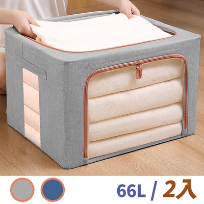Lebon life 2入/66L雙開口鋼架棉麻整理箱(衣服收納箱 衣物收納 摺疊收納)$417