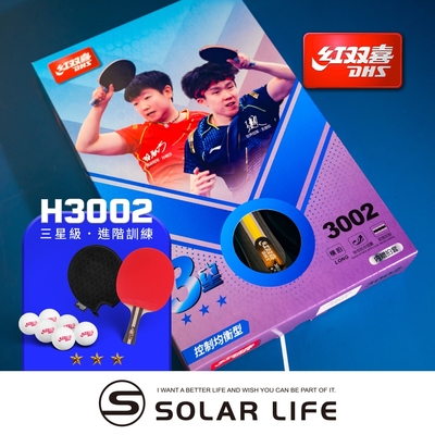 紅雙喜DHS 一星級桌球拍H1002(6512雙面膠皮)/贈球拍套+6球.乒乓球拍 橫拍 膠皮球拍 負手板 桌球刀板$539